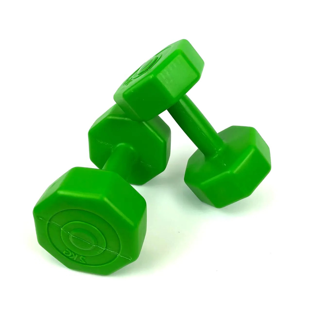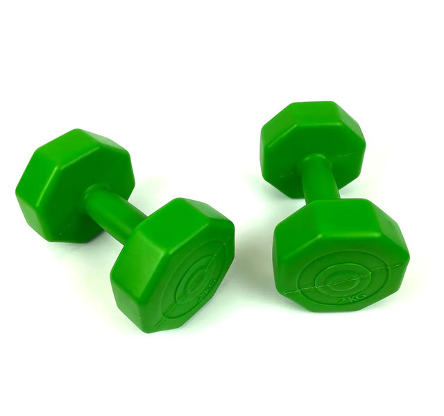 Композитні гантелі з пластиковим покриттям загальною вагою 4 кг. чудово підходять як для домашнього використання, так і для фітнес-залів. Комплект гантелі 2 шт. по 2 кг чудово підходять для занять спортом, допомагають наростити м'язи рук, грудей, спини та ніг, залежно від виконання вправ. Матеріал – композит. Колір зелений.