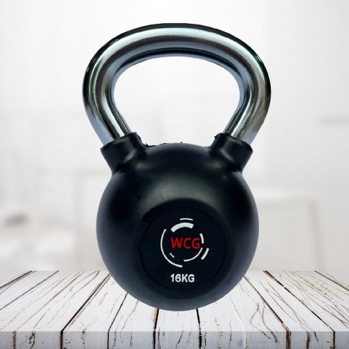 Гиря 16 кг гумова WCG спортивні з хромованою ручкою