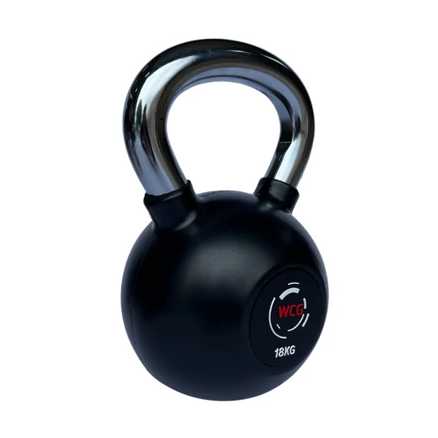 Гиря 18 кг гумова WCG спортивні з хромованою ручкою