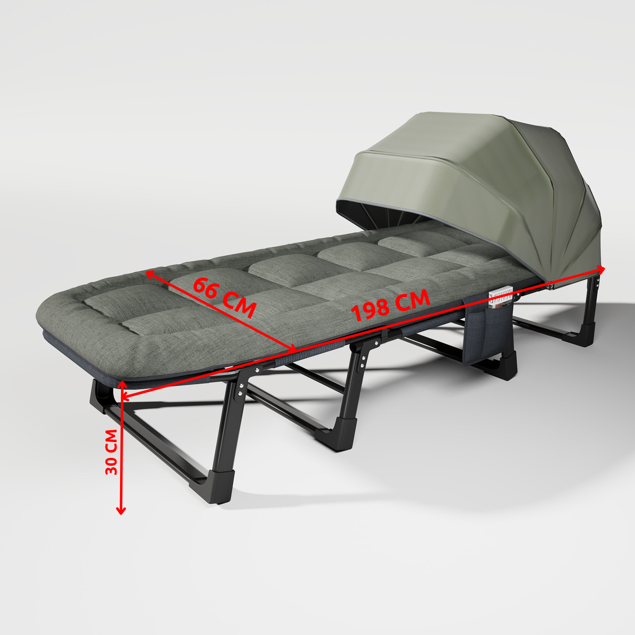 - Розмір у розкладеному вигляді: 198×66×30 см.